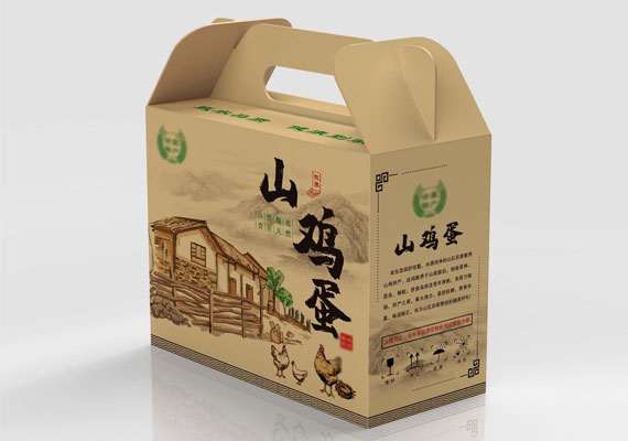 山鸡蛋手提箱,精心设计,便携实用,为山鸡蛋提供安全呵护。农家背景与牛皮纸色巧妙融合,包装尽显自然感与环保理念。